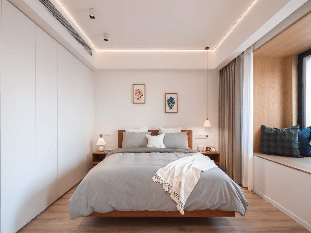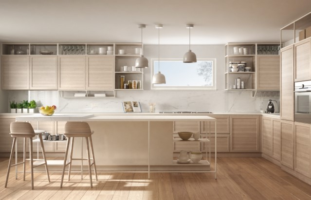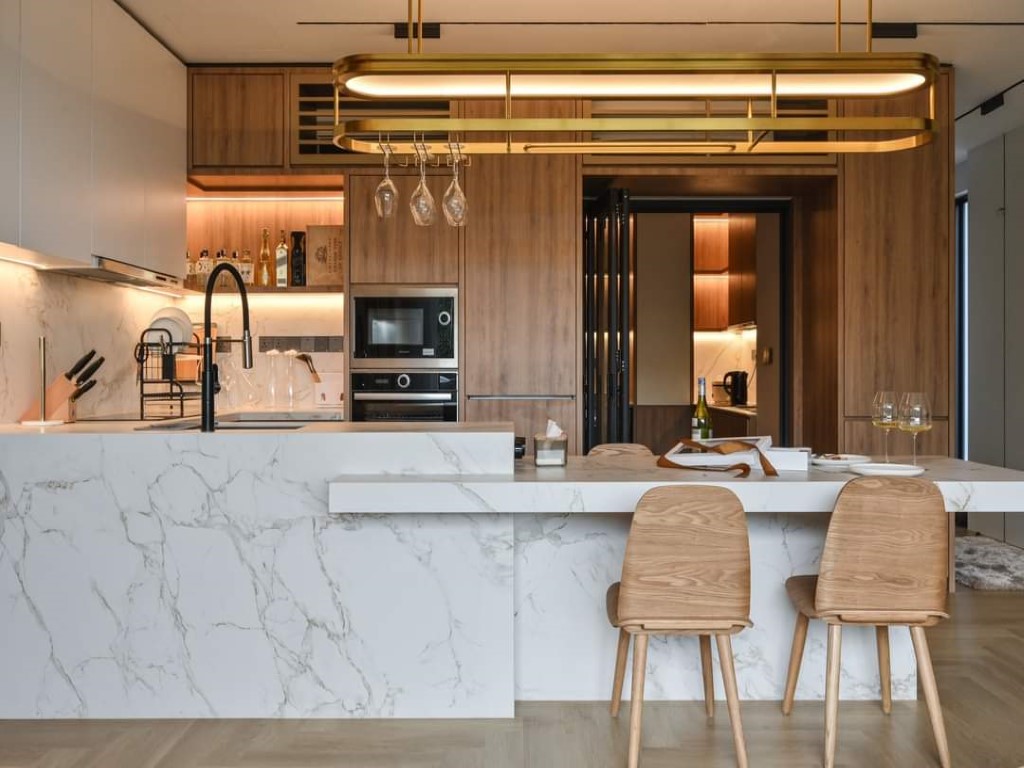 Modern white kitchen with wooden details