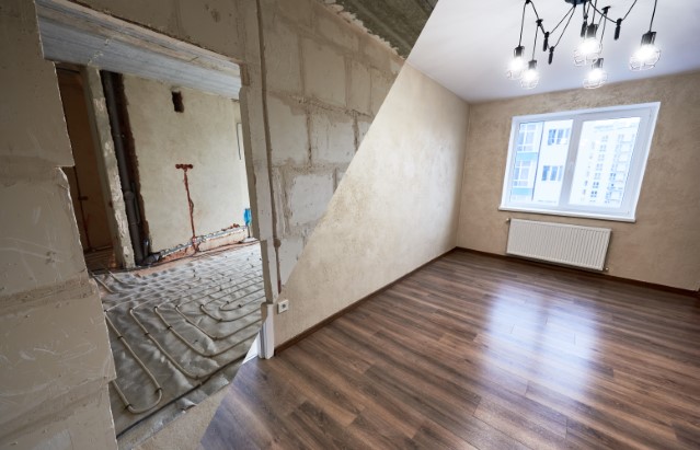 Comparison of room in apartment before and after renovation